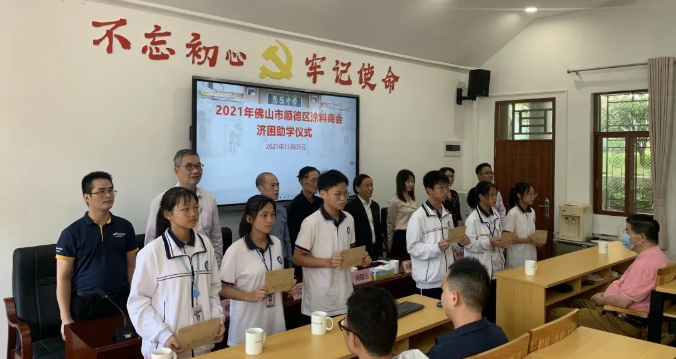 2021年11月5日,梅州市蕉岭县蕉岭中学开展了“2021年佛山市顺德区涂料商会济困助学仪式”,此次会议通过对多名受助学生代表发放奖学金,旨在帮助更多的寒门学子求真学识,鼓励他们积极向上,将来可以报效国家、感恩社会。